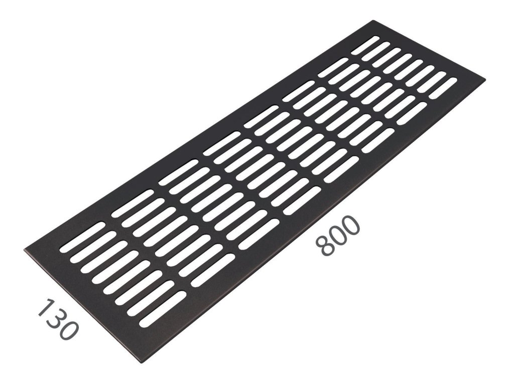 Vetracia mriežka so šírkou 130 mm je vyrobená z hliníka a je povrchovo upravená.VYUŽITIE: na odvetranie vstavaných el. spotrebičov v kuchynských linkách, na kryty radiátorov, na vzduchotechniku, do sadrokartónových priečok, do dverí, atď.