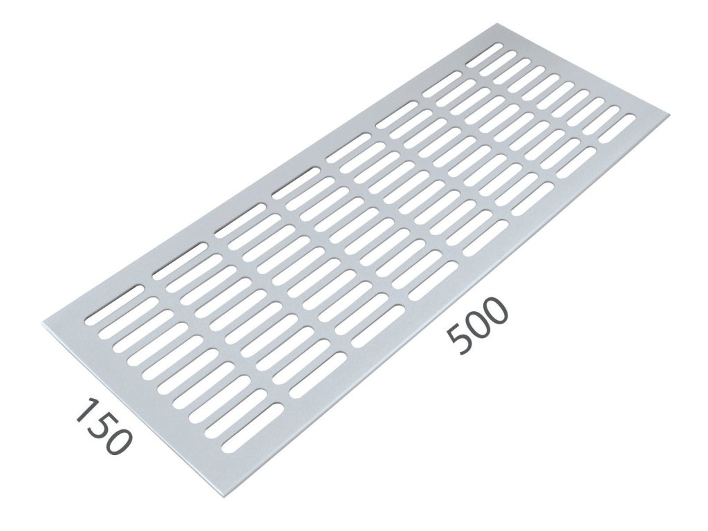 Vetracia mriežka so šírkou 150 mm je vyrobená z hliníka a je povrchovo upravená.VYUŽITIE: na odvetranie vstavaných el. spotrebičov v kuchynských linkách, na kryty radiátorov, na vzduchotechniku, do sadrokartónových priečok, do dverí, atď.