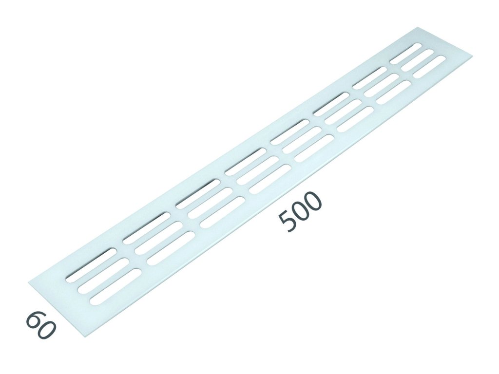 Vetracia mriežka so šírkou 60 mm je vyrobená z hliníka a je povrchovo upravená.VYUŽITIE: na odvetranie vstavaných elektrických spotrebičov v kuchynských linkách, na kryty radiátorov, na vzduchotechniku, do sadrokartónových priečok, do dverí, atď.