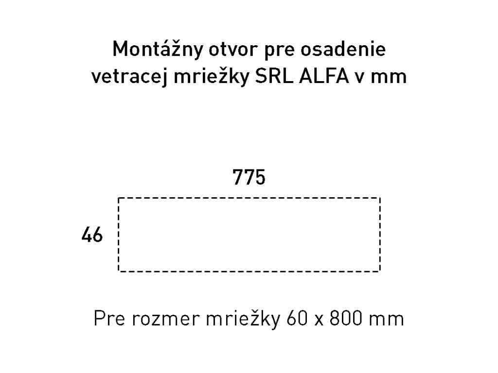 MONTÁŽ: dĺžka montážneho otvoru je o 25 mm kratšia ako je celková dĺžka mriežky (t. z. 12,5 mm z každej strany), šírka montážneho otvoru je o 14 mm užšia ako je celková šírka mriežky (t. z. 7 mm z každej strany).