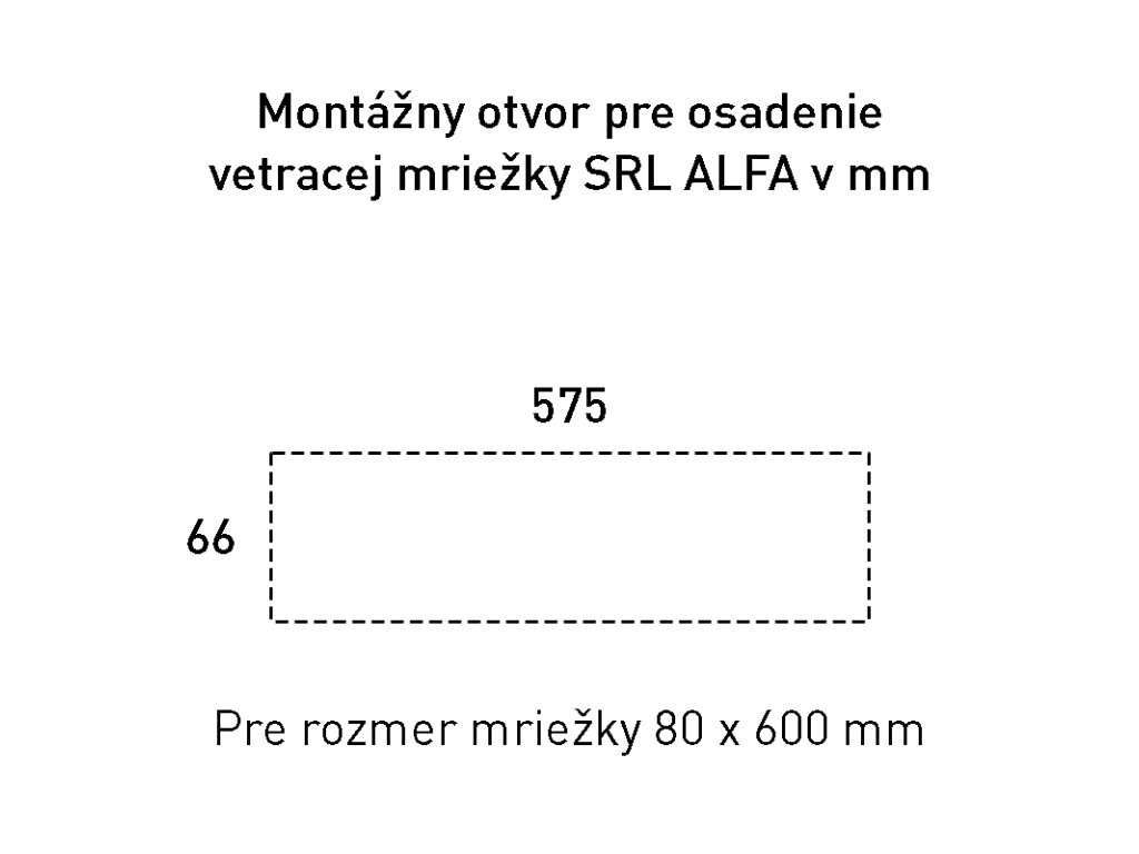 MONTÁŽ: dĺžka montážneho otvoru je o 25 mm kratšia ako je celková dĺžka mriežky (t. z. 12,5 mm z každej strany), šírka montážneho otvoru je o 14 mm užšia ako je celková šírka mriežky (t. z. 7 mm z každej strany).