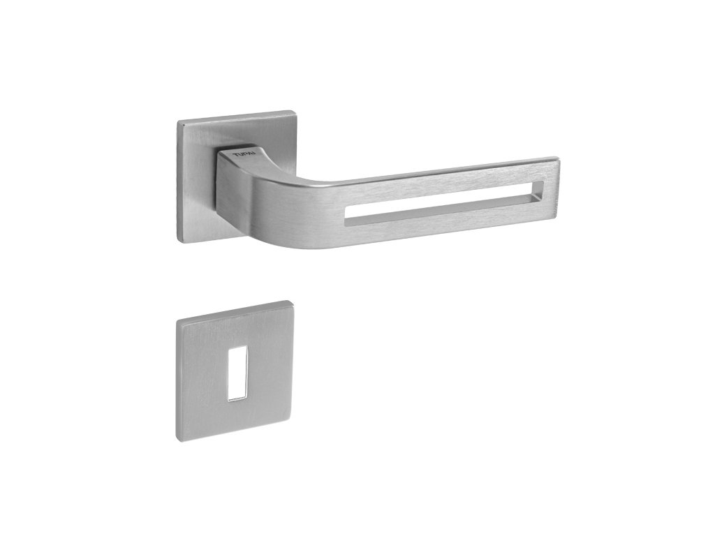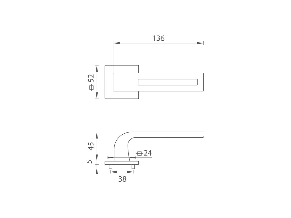 Rozetová kľučka na interiérové dvere s hranatou rozetou je vyrobená z materiálov vysokej kvality - zamak a je povrchovo upravená. Rozeta má rozmery 52 mm x 52 mm a hrúbku len 5 mm.