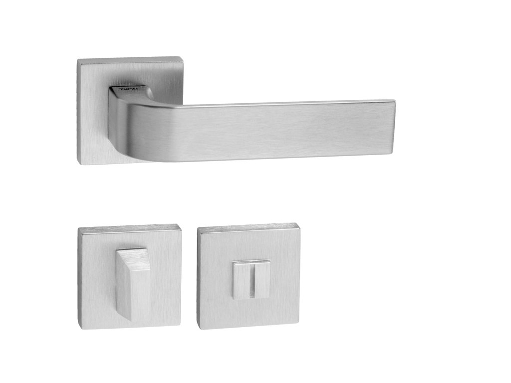 Rozetová kľučka na interiérové dvere s hranatou rozetou je vyrobená z materiálov vysokej kvality - zamak a je povrchovo upravená. Rozeta má rozmery 52 mm x 52 mm a štandardnú hrúbku 11 mm.