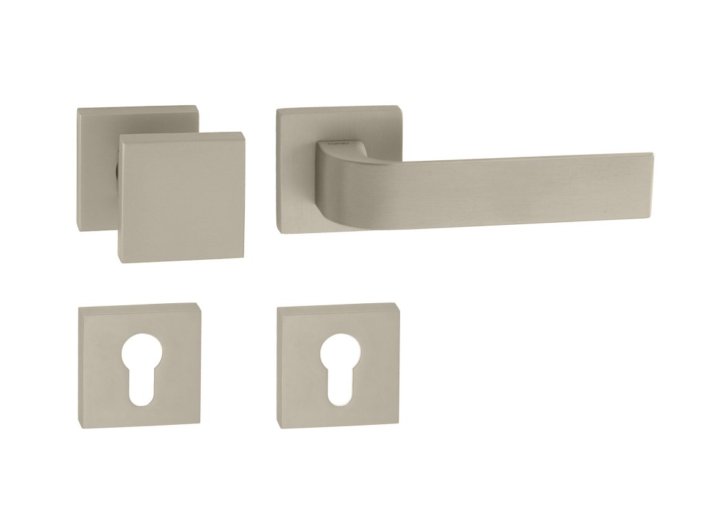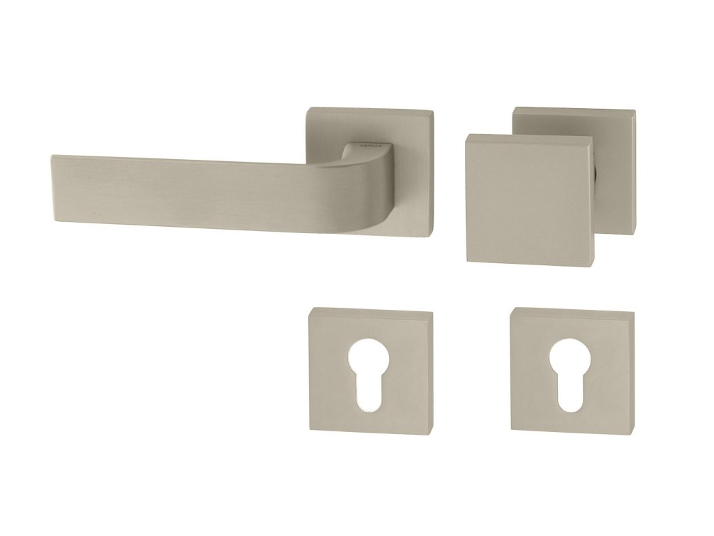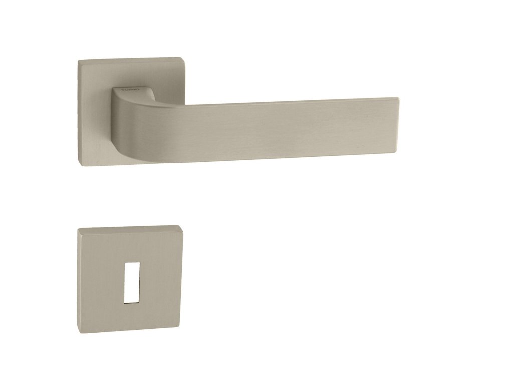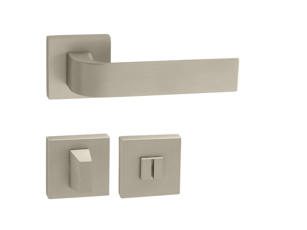 Rozetová kľučka na interiérové dvere s hranatou rozetou je vyrobená z materiálov vysokej kvality - zamak a je povrchovo upravená. Rozeta má rozmery 52 mm x 52 mm a štandardnú hrúbku 11 mm.