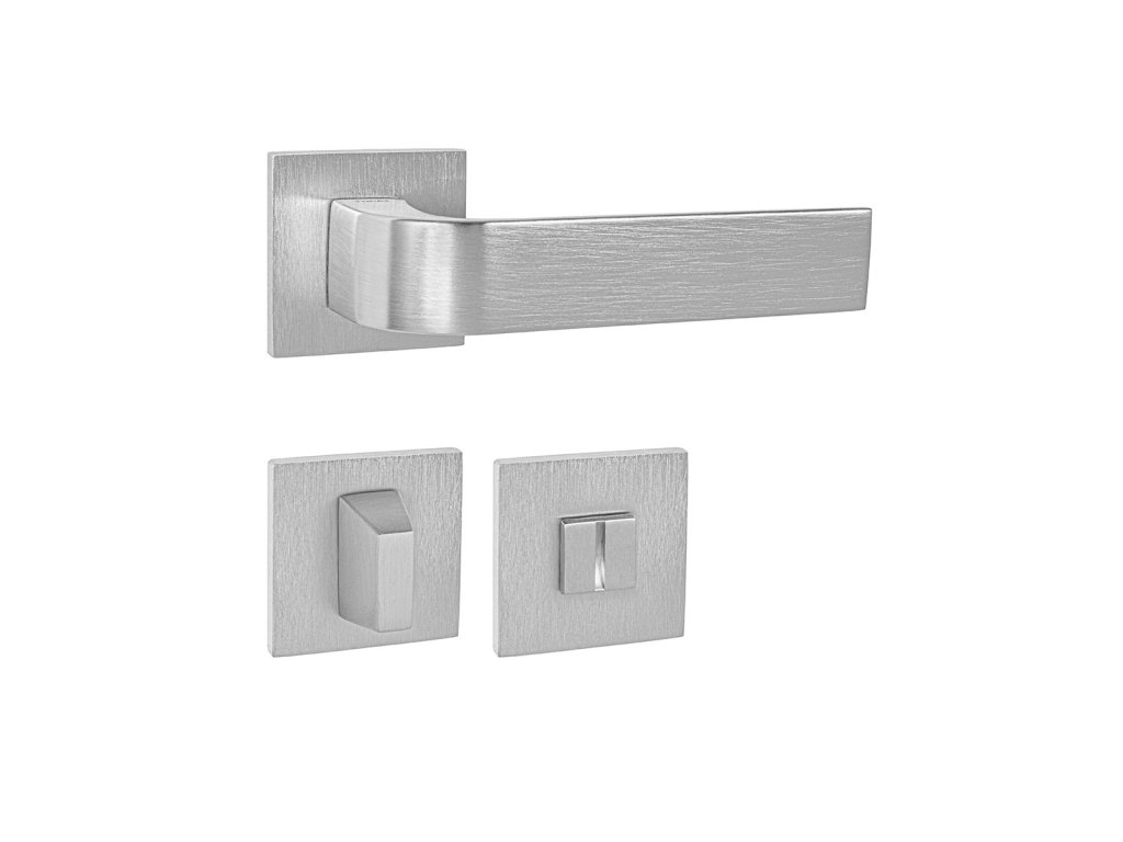 Rozetová kľučka na interiérové dvere s hranatou rozetou je vyrobená z materiálov vysokej kvality - zamak a je povrchovo upravená. Rozeta má rozmery 52 mm x 52 mm a hrúbku len 5 mm.