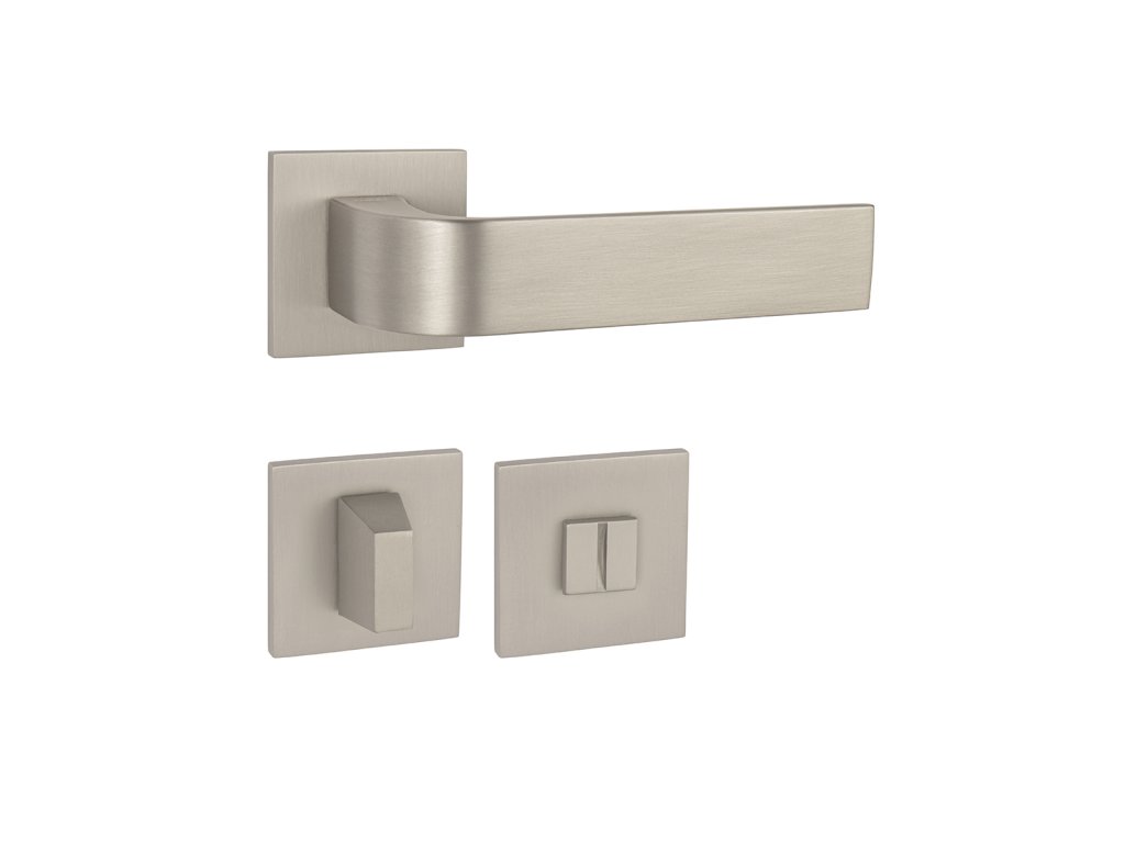 Rozetová kľučka na interiérové dvere s hranatou rozetou je vyrobená z materiálov vysokej kvality - zamak a je povrchovo upravená. Rozeta má rozmery 52 mm x 52 mm a hrúbku len 5 mm.