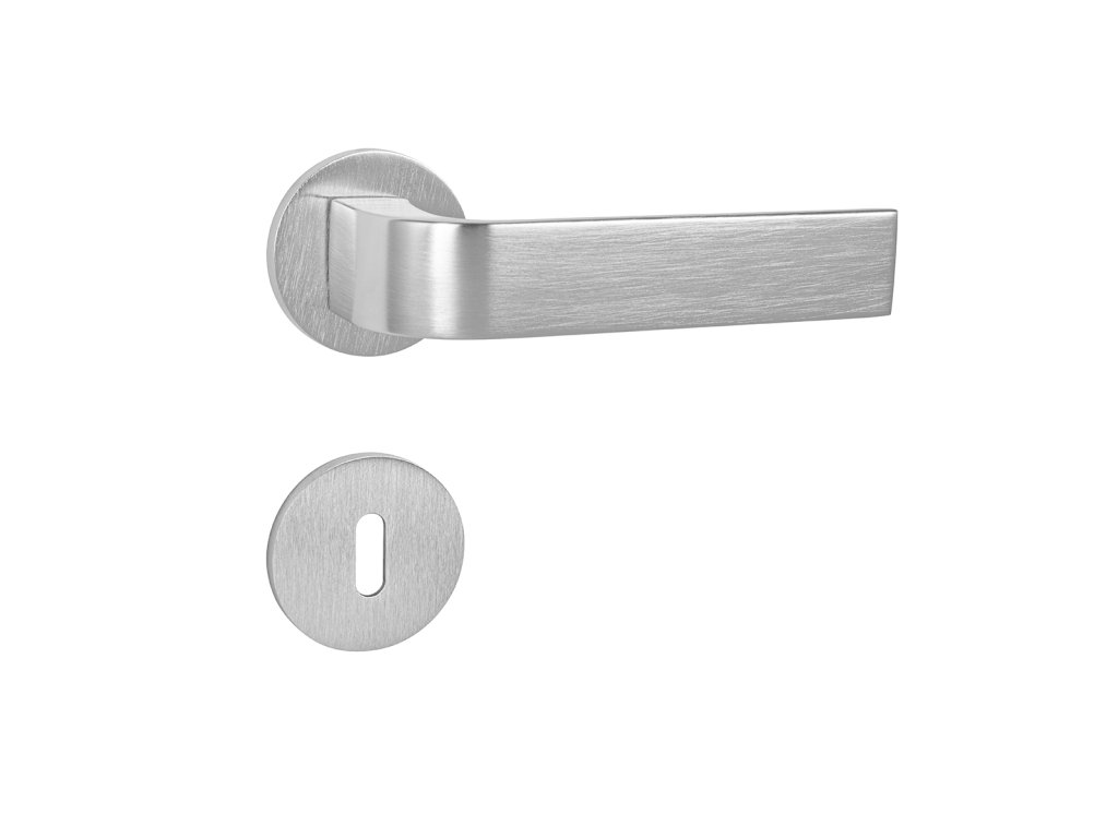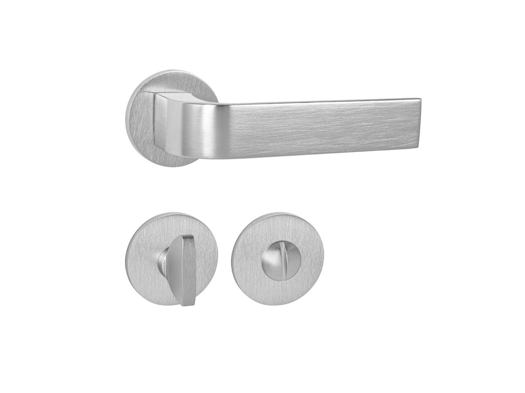 Rozetová kľučka na interiérové dvere s okrúhlou rozetou je vyrobená z materiálov vysokej kvality - zamak a je povrchovo upravená. Rozeta má priemer 52 mm a hrúbku len 5 mm.
