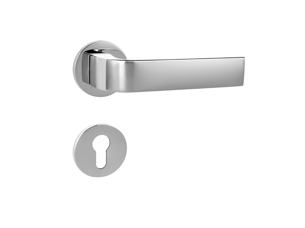 Rozetová kľučka na interiérové dvere s okrúhlou rozetou je vyrobená z materiálov vysokej kvality - zamak a je povrchovo upravená. Rozeta má priemer 52 mm a hrúbku len 5 mm.
