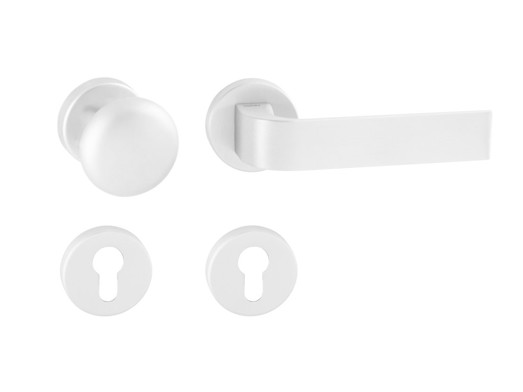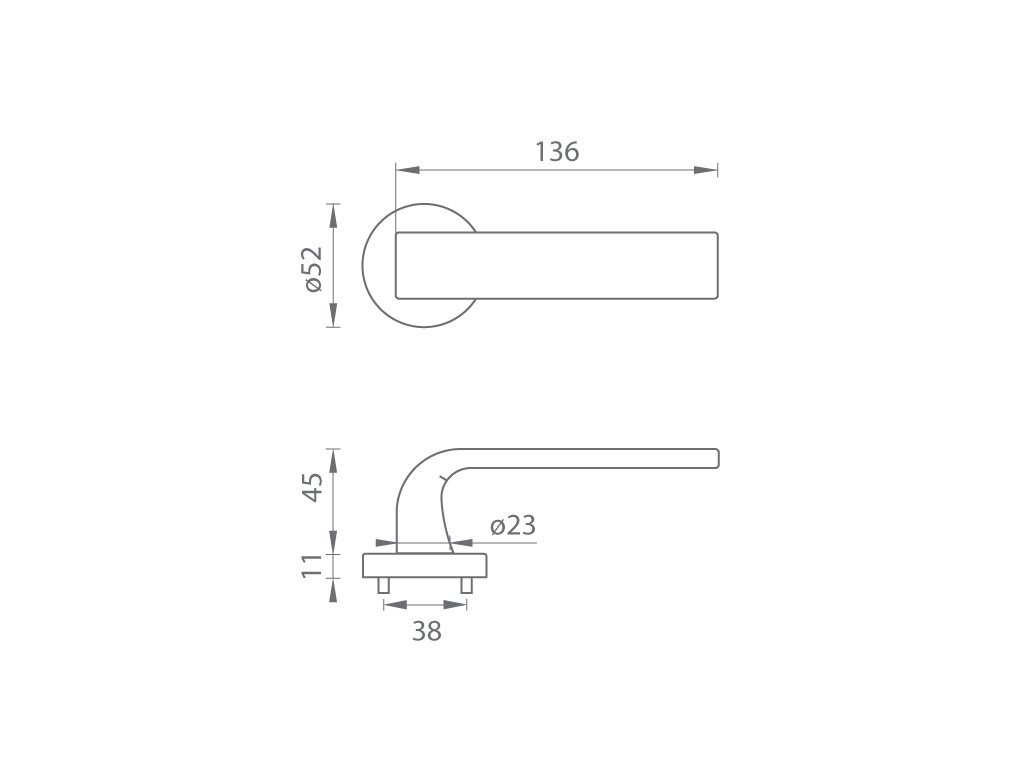 Rozetová kľučka na interiérové dvere s okrúhlou rozetou rozetou je vyrobená z materiálov vysokej kvality - zamak a je povrchovo upravená. Rozeta má priemer 52 mm a štandardnú hrúbku 11 mm.