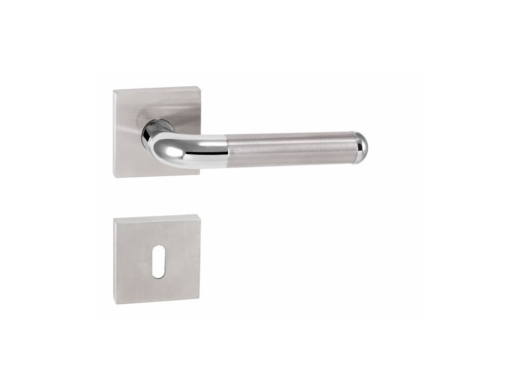 Rozetová kľučka na interiérové dvere s hranatou rozetou je vyrobená z materiálov vysokej kvality - zamak a z vysokokvalitnej nehrdzavejúcej ocele, známej ako nerez a je povrchovo upravená. Rozeta má rozmery 52 mm x 52 mm a štandardnú hrúbku 11 mm.