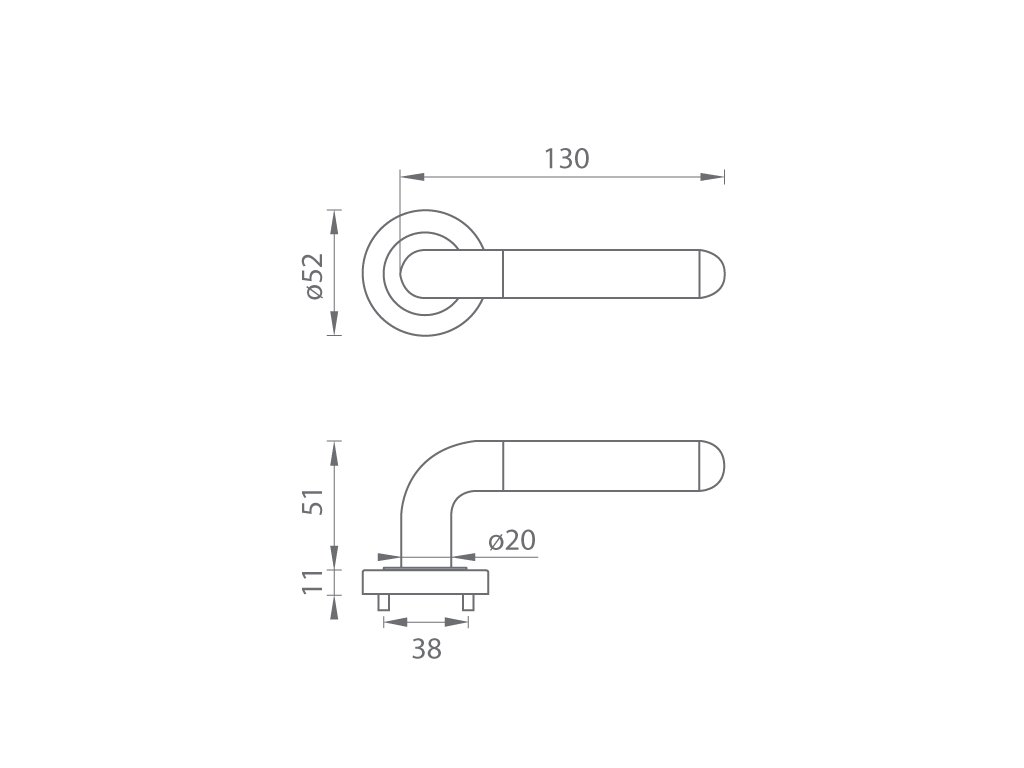 Rozetová kľučka na interiérové dvere s okrúhlou rozetou je vyrobená z materiálov vysokej kvality - zamak a z vysokokvalitnej nehrdzavejúcej ocele, známej ako nerez a je povrchovo upravená. Rozeta má priemer 52 mm a štandardnú hrúbku 11 mm.