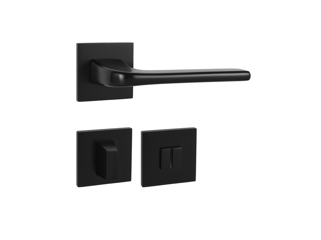 Rozetová kľučka na interiérové dvere s hranatpou rozetou je vyrobená z materiálov vysokej kvality - mosadz a je povrchovo upravená. Rozeta má rozmery 52 mm x 52 mm a hrúbku len 5 mm.