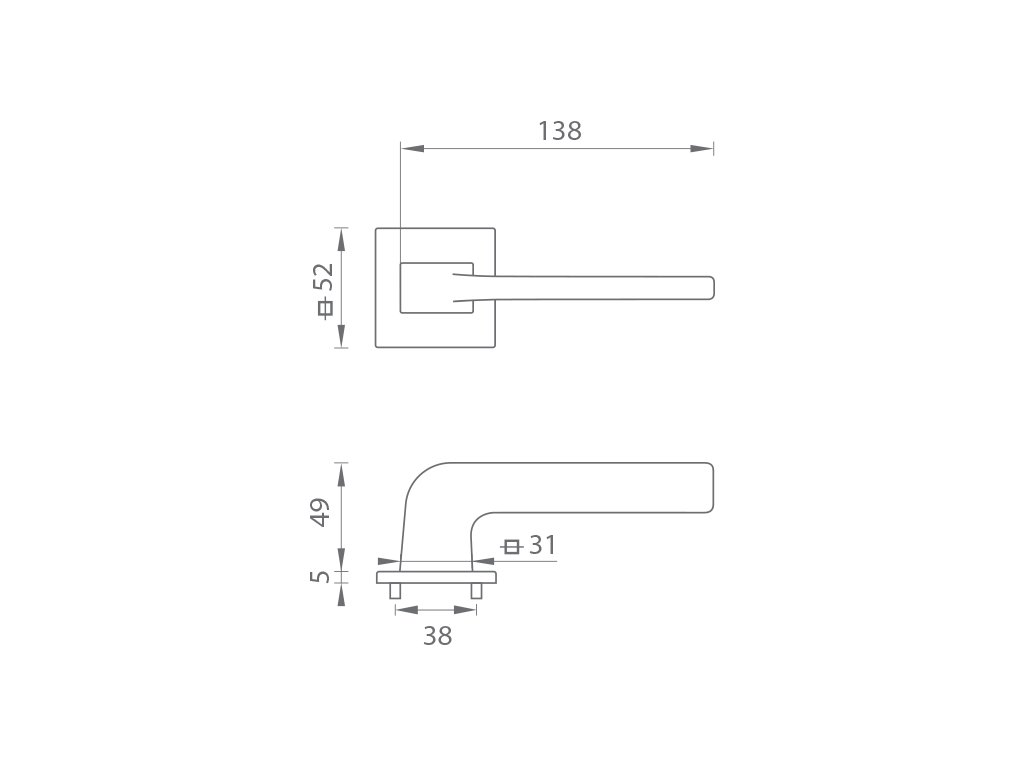 Rozetová kľučka na interiérové dvere s hranatou rozetou je vyrobená z materiálov vysokej kvality - mosadz a je povrchovo upravená. Rozeta má rozmery 52 mm x 52 mm a hrúbku len 5 mm.