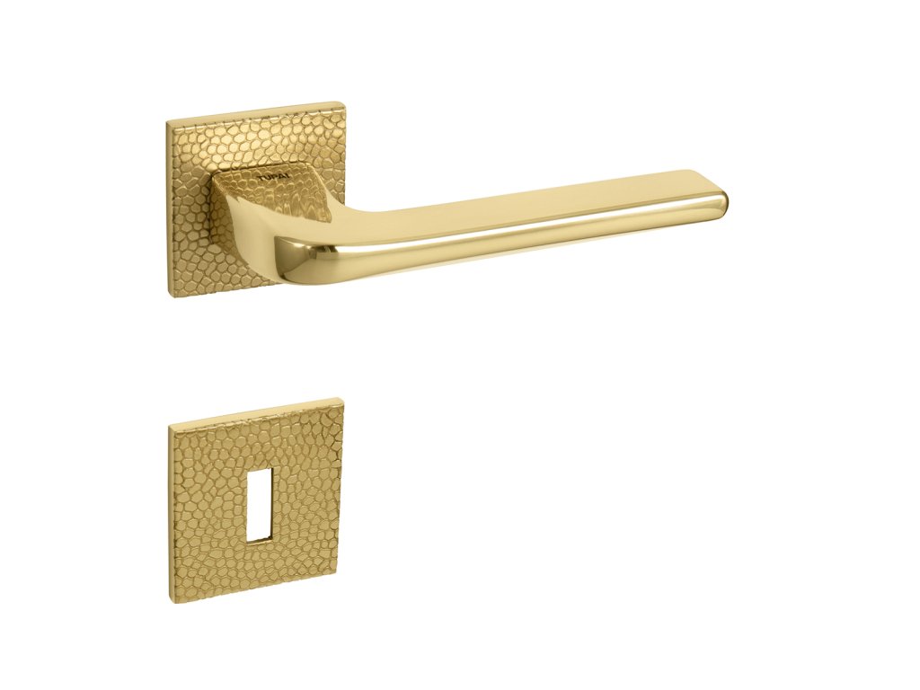 Dizajnová rozetová kľučka na interiérové dvere vyrobená z kvalitného materiálu - mosadz. Štvorcová rozeta má rozmer 52 x 52 mm a hrúbku len 5 mm.