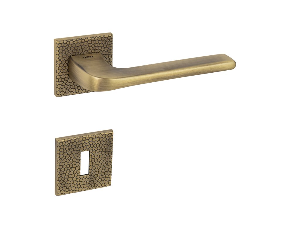 Dizajnová rozetová kľučka na interiérové dvere vyrobená z kvalitného materiálu - mosadz. Štvorcová rozeta má rozmer 52 x 52 mm a hrúbku len 5 mm.