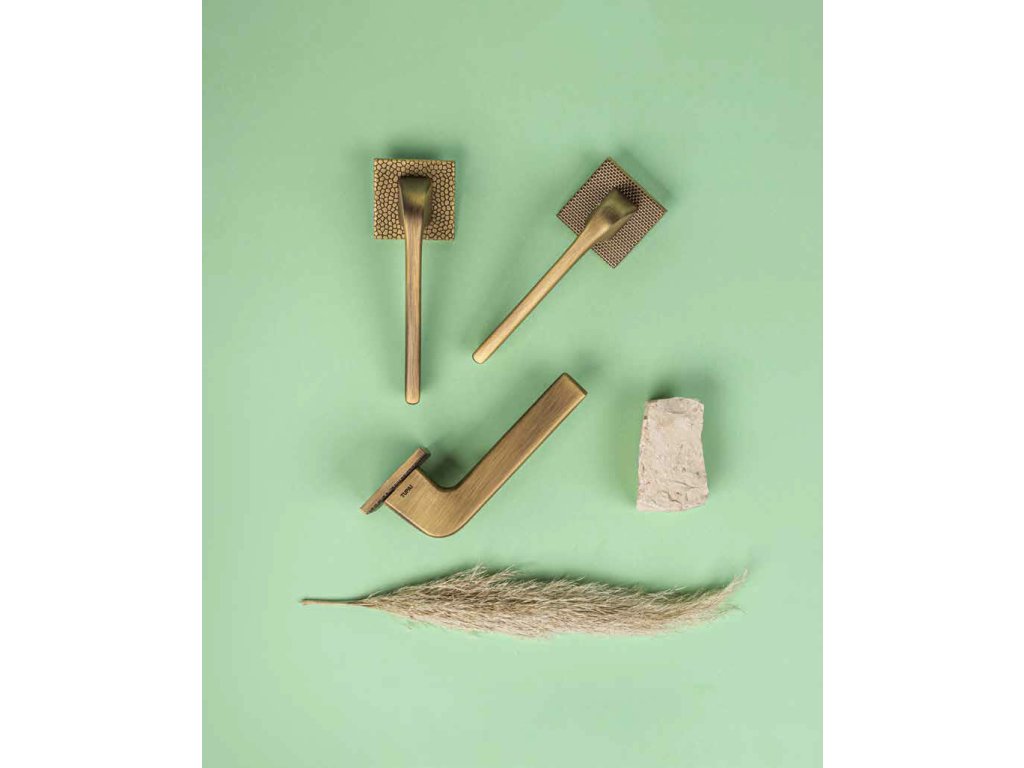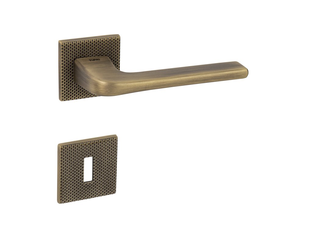 Dizajnová rozetová kľučka na interiérové dvere vyrobená z kvalitného materiálu - mosadz. Štvorcová rozeta má rozmer 52 x 52 mm a hrúbku len 5 mm.