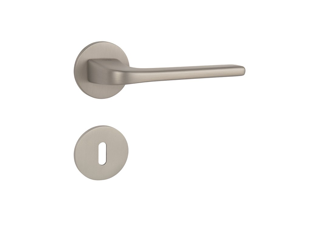 Rozetová kľučka na interiérové dvere s okrúhlou rozetou je vyrobená z materiálov vysokej kvality - mosadz a je povrchovo upravená. Rozeta má priemer 52 mm a hrúbku len 5 mm.