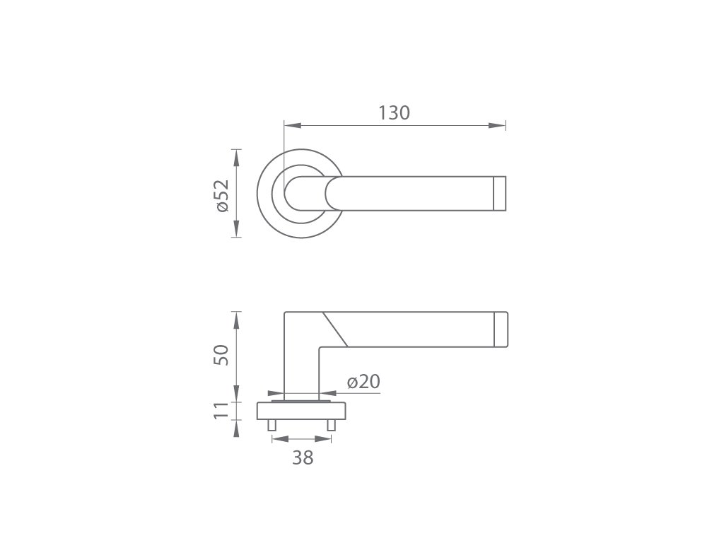 Rozetová kľučka na interiérové dvere s okrúhlou rozetou je vyrobená z materiálov vysokej kvality - zamak a z vysokokvalitnej nehrdzavejúcej ocele, známej ako nerez a je povrchovo upravená. Rozeta má priemer 52 mm a štandardnú hrúbku 11 mm.
