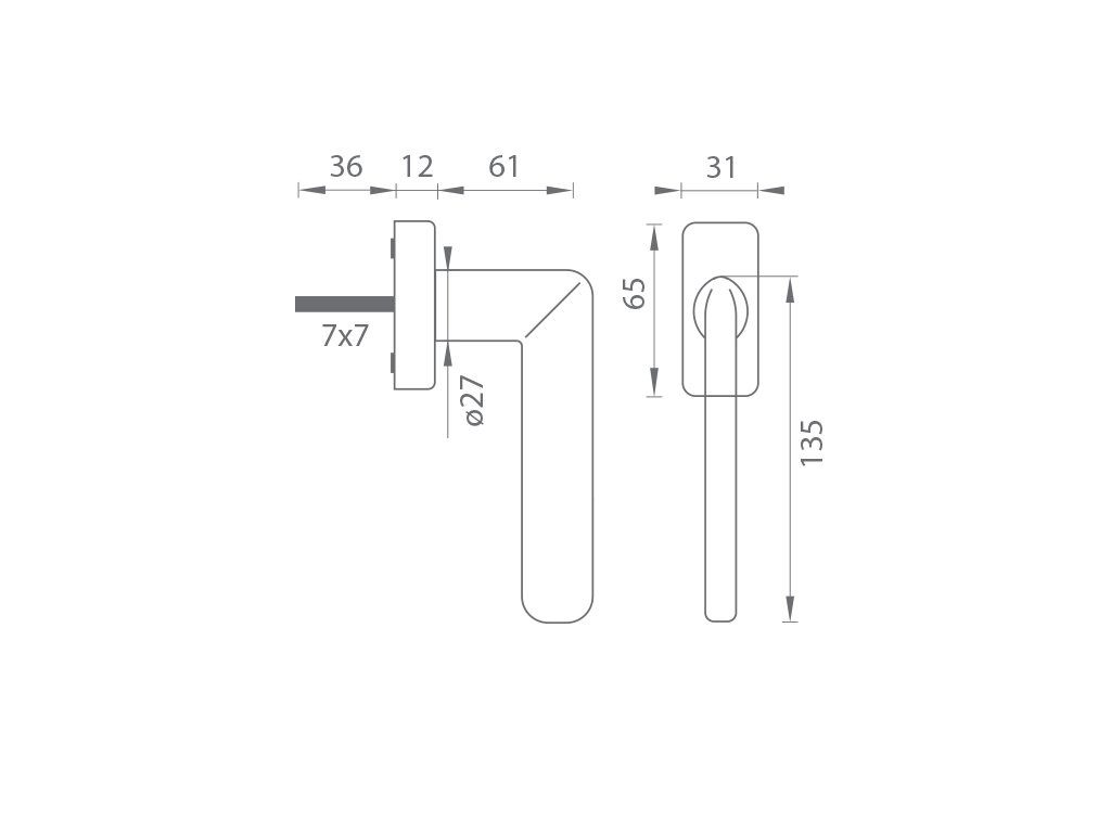 Kľučka na eurookno s hranatou rozetou je vyrobená z materiálov vysokej kvality – zamak a je povrchovo upravená. Rozeta má rozmery 31 mm x 65 mm a hrúbku 11 mm.