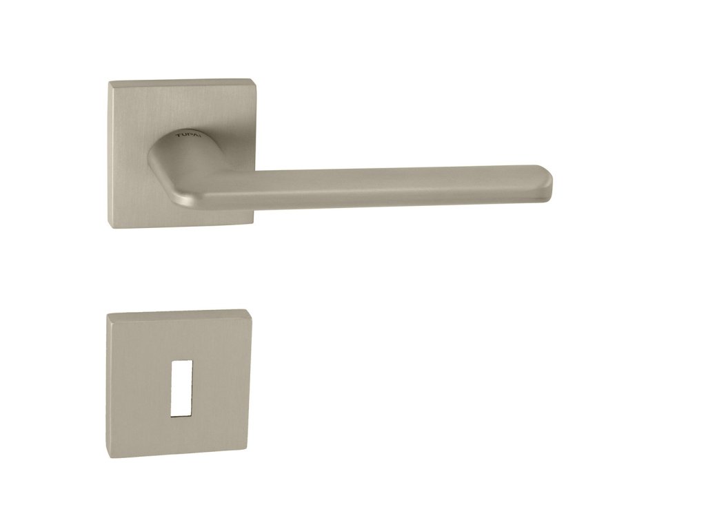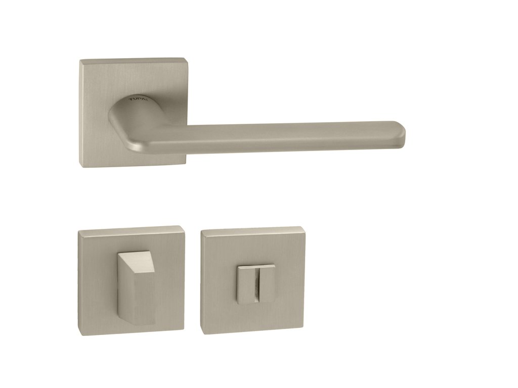 Rozetová kľučka na interiérové dvere s hranatou rozetou je vyrobená z materiálov vysokej kvality - zamak a je povrchovo upravená. Rozeta má rozmery 52 mm x 52 mm a štandardnú hrúbku 11 mm.
