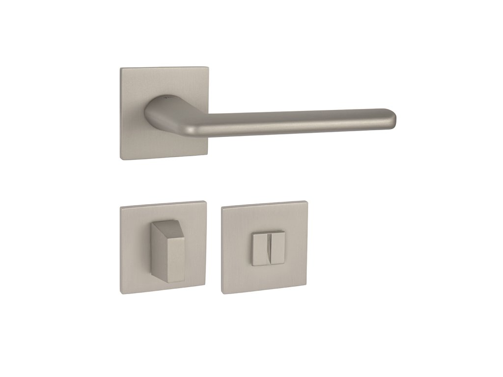 Rozetová kľučka na interiérové dvere s hranatou rozetou je vyrobená z materiálov vysokej kvality - zamak a je povrchovo upravená. Rozeta má rozmery 52 mm x 52 mm a hrúbku len 5 mm.