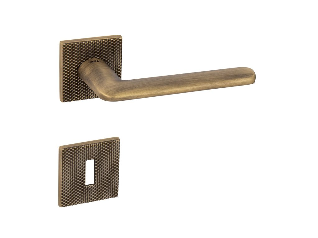 Dizajnová rozetová kľučka na interiérové dvere vyrobená z osvedčeného materiálu vysokej kvality - mosadz. Štvorcová rozeta má rozmer 52 x 52 mm a hrúbku len 5 mm.