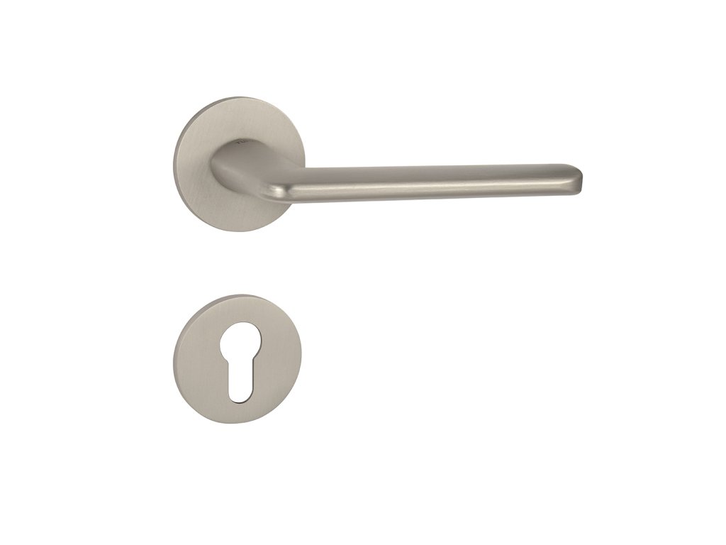 Rozetová kľučka na interiérové dvere s okrúhlou rozetou je vyrobená z materiálov vysokej kvality - zamak a je povrchovo upravená. Rozeta má priemer 52 mm a hrúbku len 5 mm.