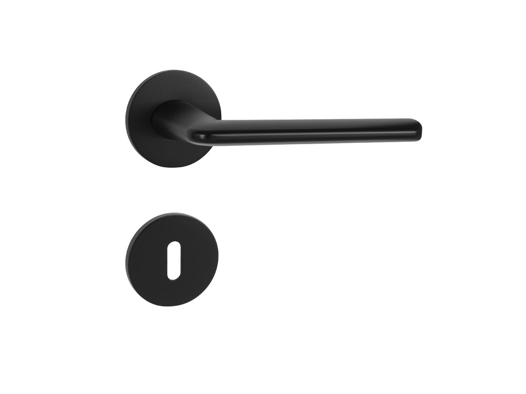 Rozetová kľučka na interiérové dvere s okrúhlou rozetou je vyrobená z materiálov vysokej kvality - zamak a je povrchovo upravená. Rozeta má priemer 52 mm a hrúbku len 5 mm.