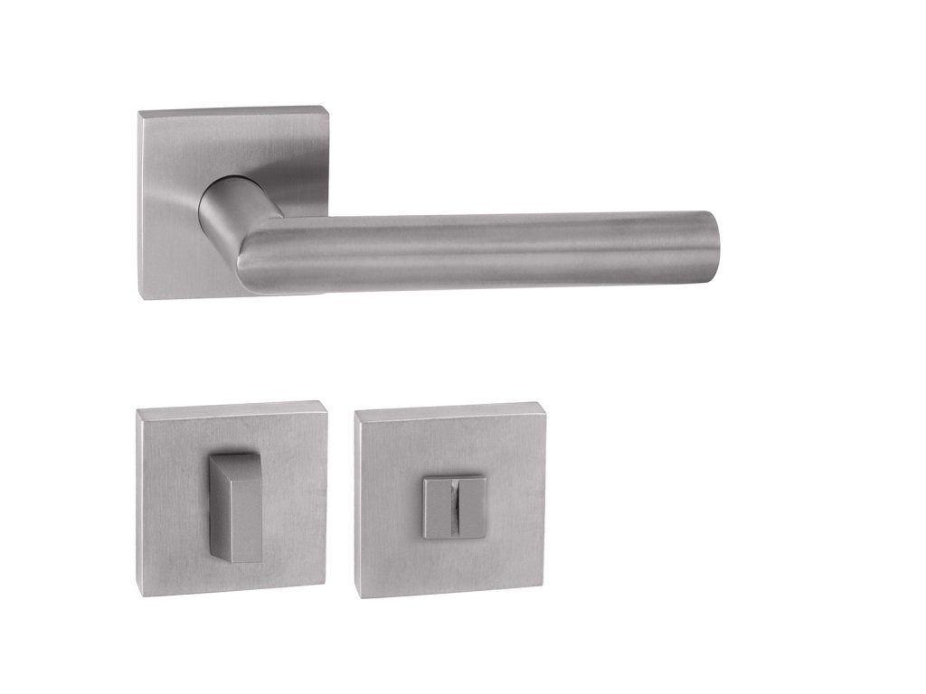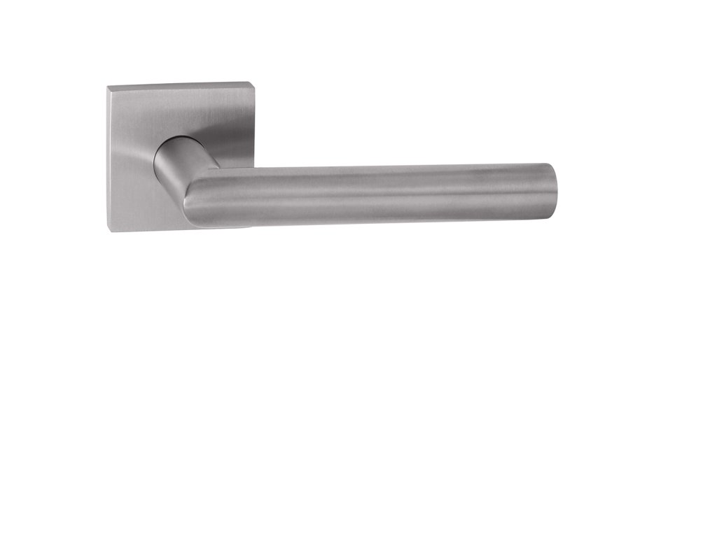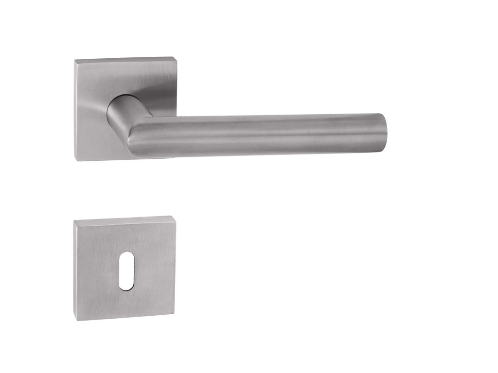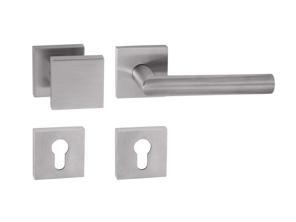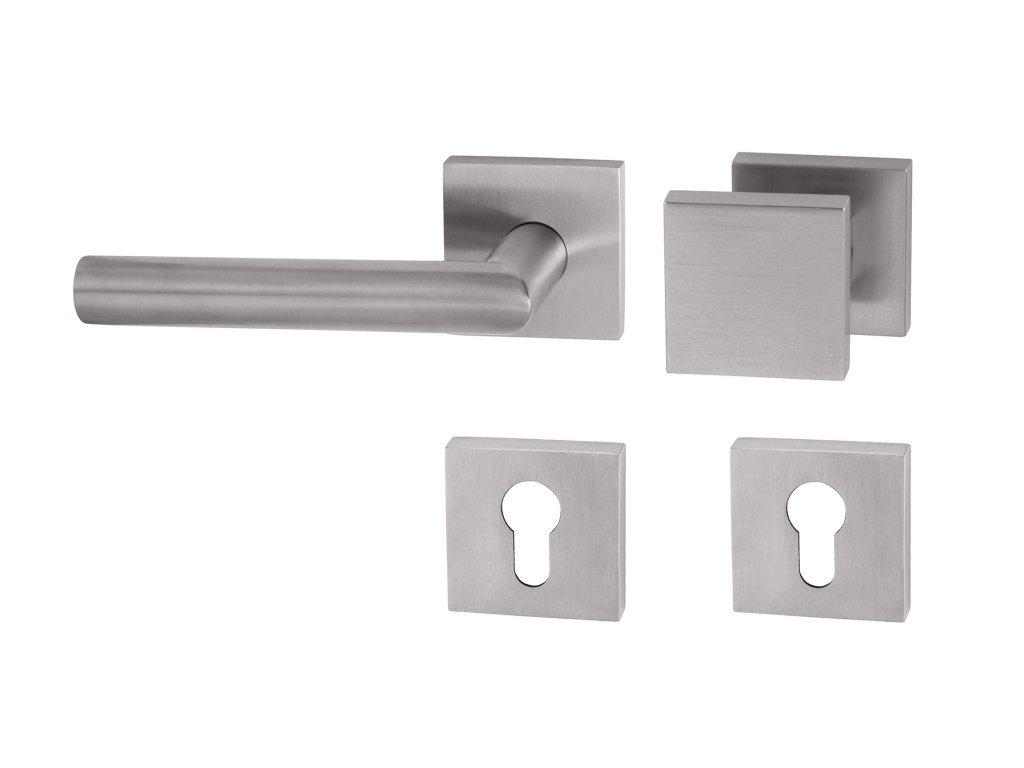 Rozetová kľučka na interiérové dvere s hranatou rozetou je vyrobená z vysokokvalitnej nehrdzavejúcej ocele, známej ako nerez a je povrchovo upravená. Rozeta má rozmery 52 mm x 52 mm a štandardnú hrúbku 11 mm.