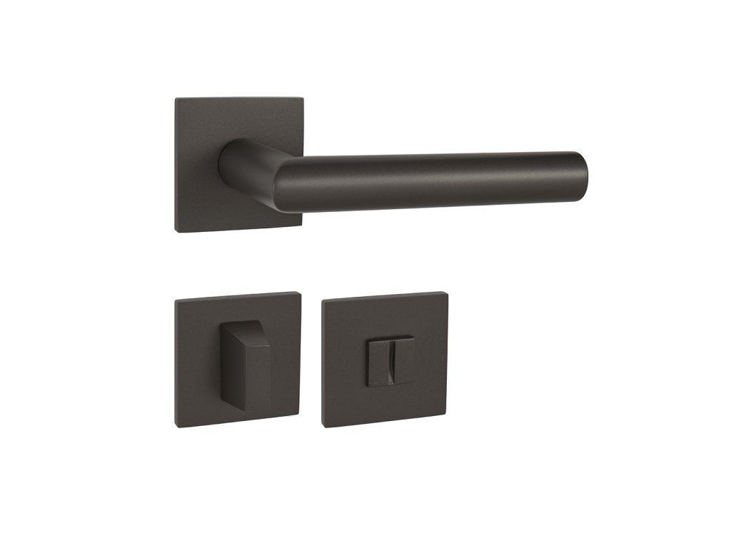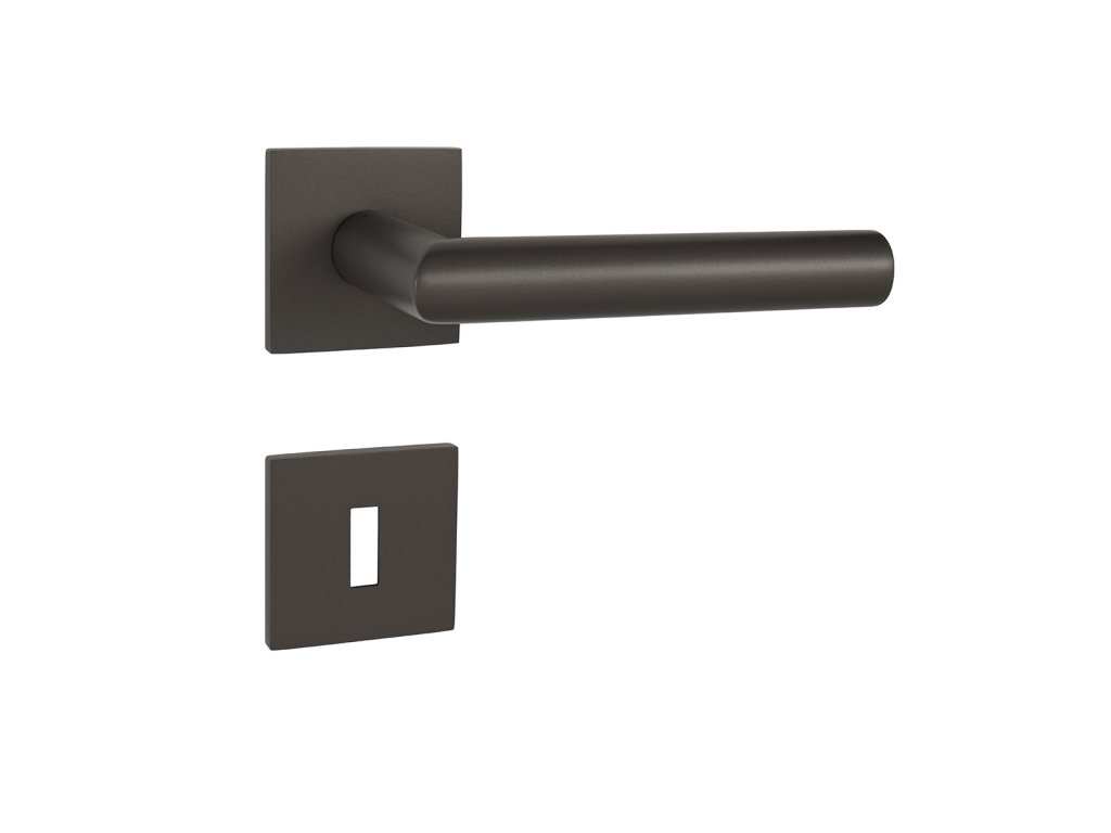 Rozetová kľučka na interiérové dvere s hranatou rozetou je vyrobená z vysokokvalitnej nehdrzavejúcej ocele, známej ako nerez a je povrchovo upravená.