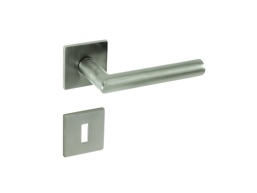 Rozetová kľučka na interiérové dvere s hranatou rozetou je vyrobená z materiálov vysokej kvality - mosadz a je povrchovo upravená špeciálnou technológiou. Rozeta má rozmery 52 mm x 52 mm a hrúbku len 5 mm.