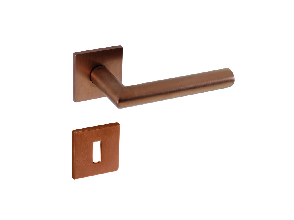 Rozetová kľučka na interiérové dvere s hranatou rozetou je vyrobená z materiálov vysokej kvality - mosadz a je povrchovo upravená špeciálnou technológiou. Rozeta má rozmery 52 mm x 52 mm a hrúbku len 5 mm.