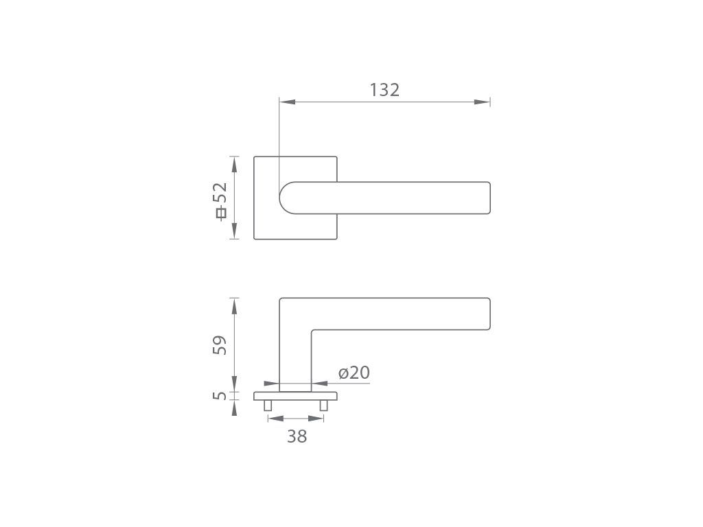 Dizajnová rozetová kľučka na interiérové dvere vyrobená z kvalitného materiálu - mosadz. Štvorcová rozeta má rozmer 52 x 52 mm a hrúbku len 5 mm.