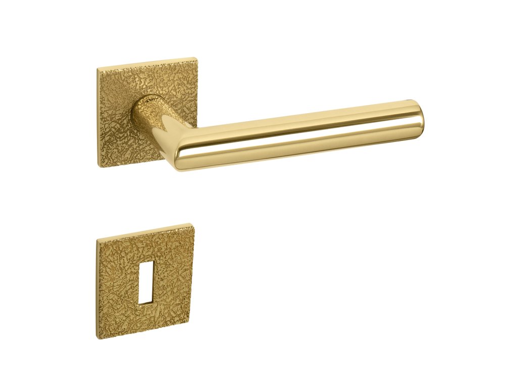Dizajnová rozetová kľučka na interiérové dvere vyrobená z kvalitného materiálu - mosadz. Štvorcová rozeta má rozmer 52 x 52 mm a hrúbku len 5 mm.