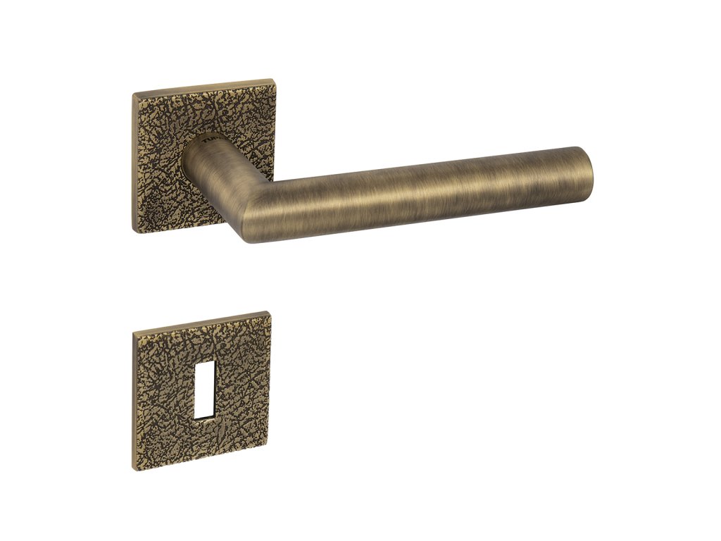 Dizajnová rozetová kľučka na interiérové dvere vyrobená z kvalitného materiálu - mosadz. Štvorcová rozeta má rozmer 52 x 52 mm a hrúbku len 5 mm.
