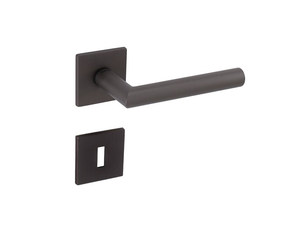 Rozetová kľučka na interiérové dvere s hranatou rozetou je vyrobená z materiálov vysokej kvality - mosadz a je povrchovo upravená. Rozeta má rozmery 52 mm x 52 mm a hrúbku len 5 mm.