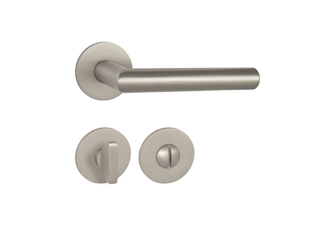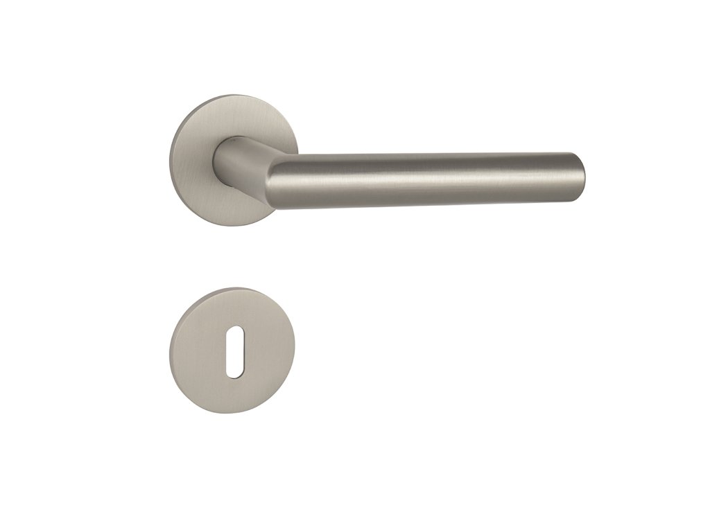 Rozetová kľučka na interiérové dvere s okrúhlou rozetou je vyrobená z vysokokvalitnej nehdrzavejúcej ocele, známej ako nerez a je povrchovo upravená. Rozeta má priemer 52 mm a hrúbku len 5 mm.