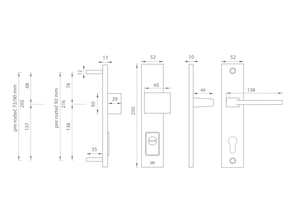 Pri bezpečnostnom kovaní je potrebné poznať vzdialenosť medzi osou kľučky a osou kľúča (rozteč). Štandardná vzdialenosť je 72, 90 alebo 92 mm.