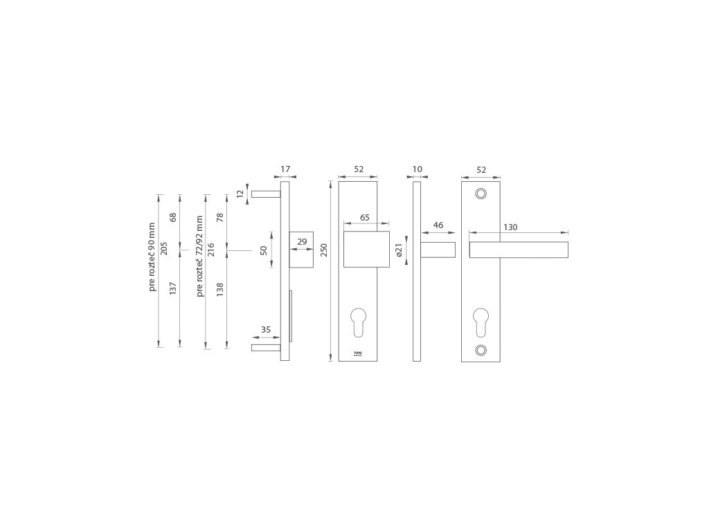 Kategória: | Kľučky na bezpečnostných hranatých štítoch bez prekrytia vložky |