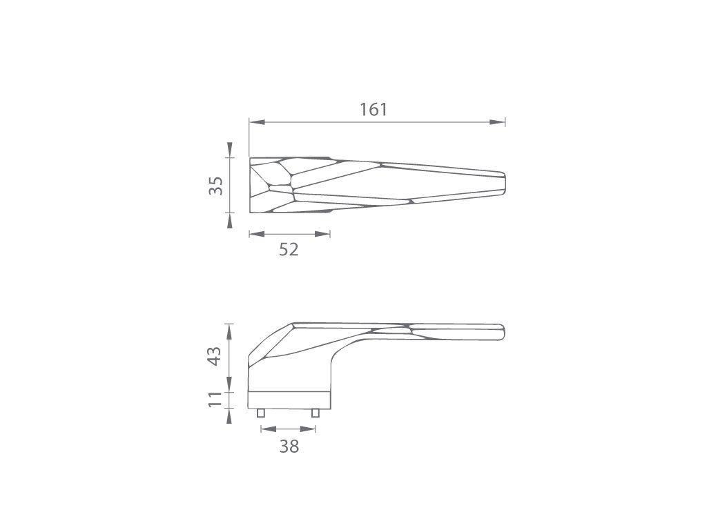 Rozetová kľučka na interiérové dvere s obdĺžnikovou rozetou je vyrobená z materiálov vysokej kvality - mosadz a je povrchovo upravená. Rozeta má rozmery 52 mm x 35 mm a štandardnú hrúbku 11 mm. Samotná rozeta je súčasťou dizajnu kľučky. Unikátny nadčasový dizajn TUPAI ICE inšpirovaný impozantnou krásou ľadovca.