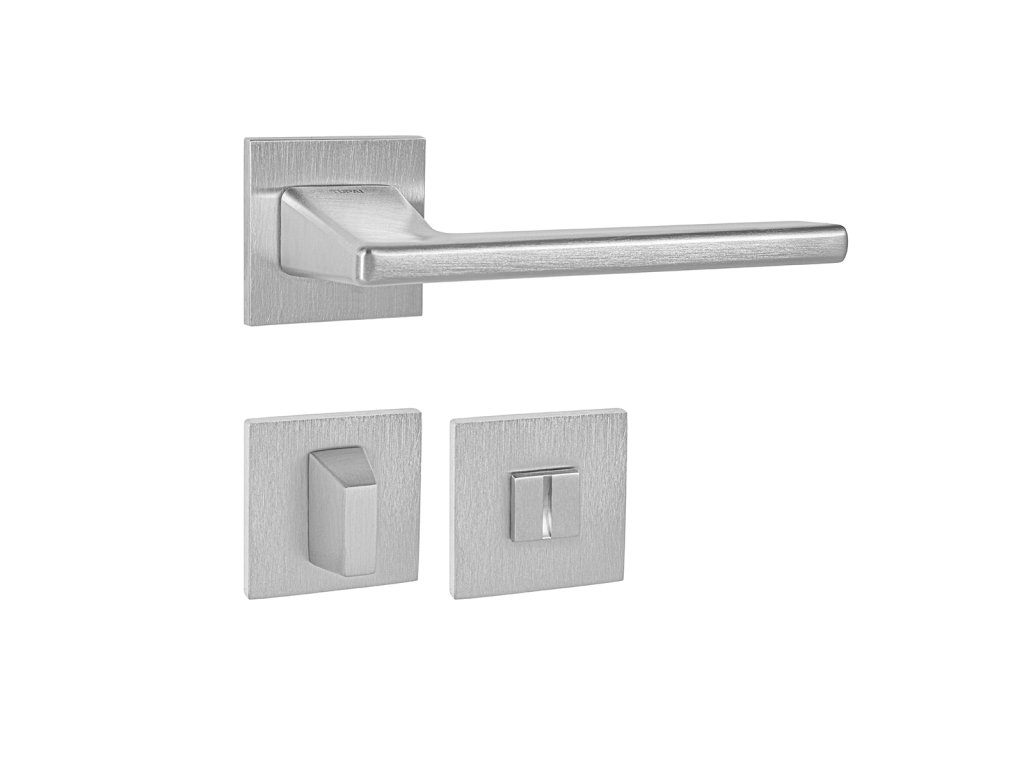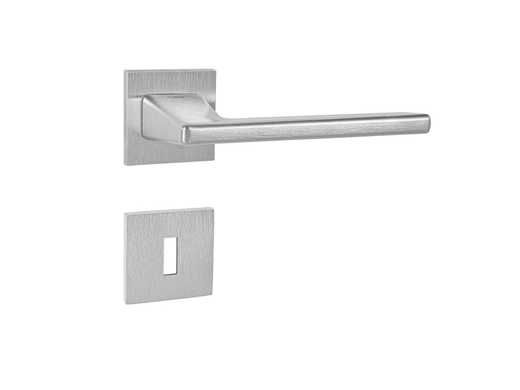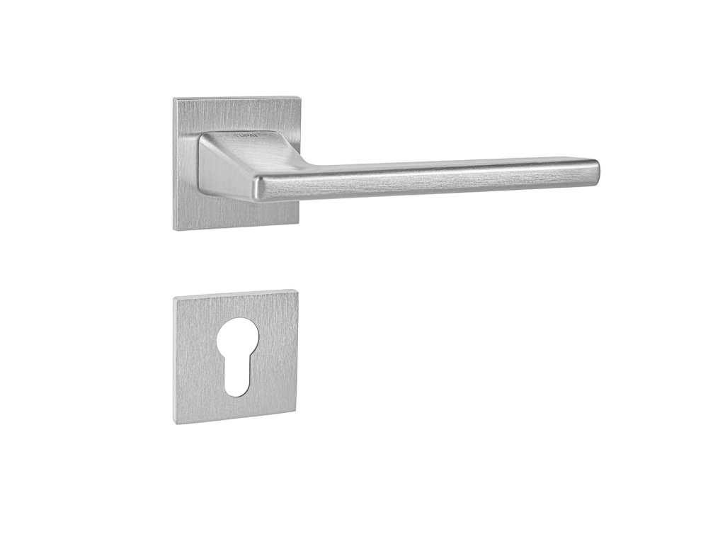 Rozetová kľučka na interiérové dvere s hranatou rozetou je vyrobená z materiálov vysokej kvality - zamak a je povrchovo upravená. Rozeta má rozmery 52 mm x 52 mm a hrúbku len 5 mm.