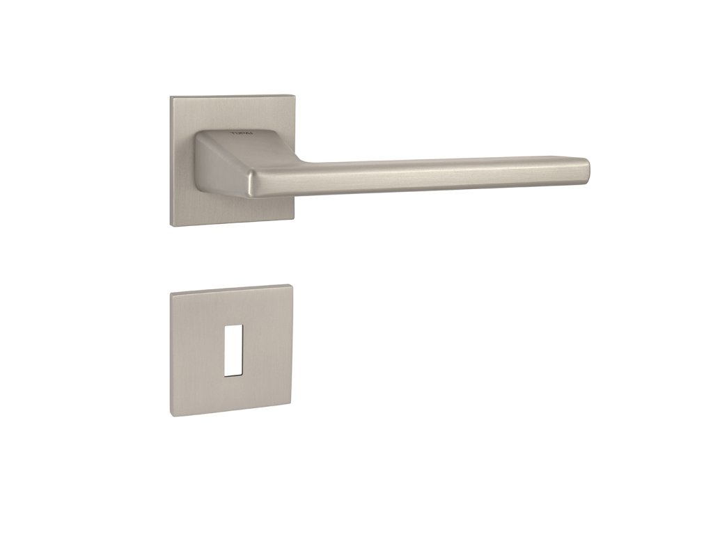 Rozetová kľučka na interiérové dvere s hranatou rozetou je vyrobená z materiálov vysokej kvality - zamak a je povrchovo upravená. Rozeta má rozmery 52 mm x 52 mm a hrúbku len 5 mm.