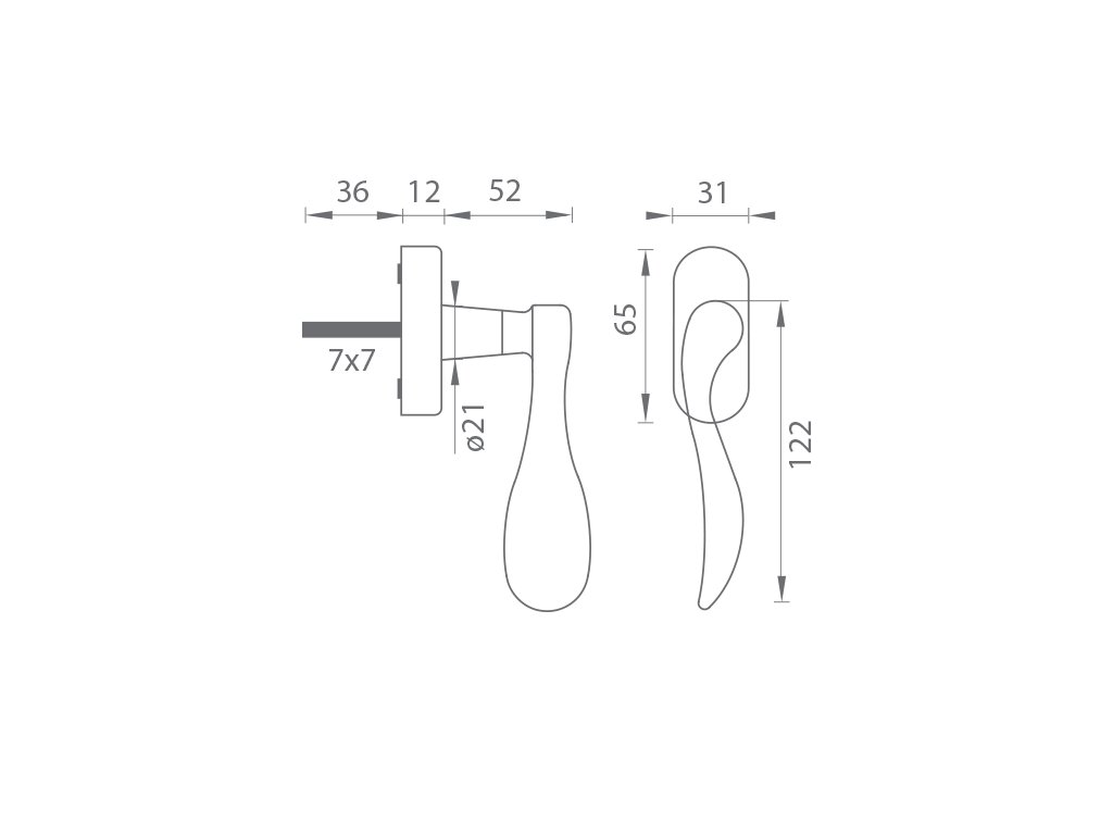 Kľučka na eurookno s oválnou rozetou je vyrobená z materiálov vysokej kvality – mosadz a je povrchovo upravená. Rozeta má rozmery 31 mm x 65 mm a hrúbku 11 mm.Konštrukcia kľučky pre TUPAI WINDOW: