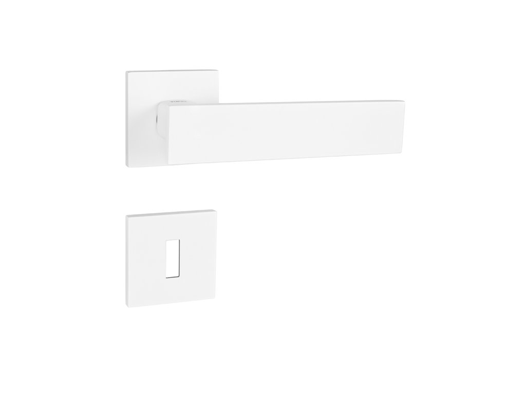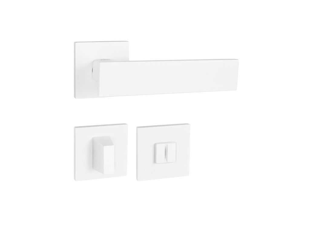 Rozetová kľučka na interiérové dvere s hranatou rozetou je vyrobená z materiálov vysokej kvality - zamak a je povrchovo upravená. Rozeta má rozmery 52 mm x 52 mm a hrúbku len 5 mm.