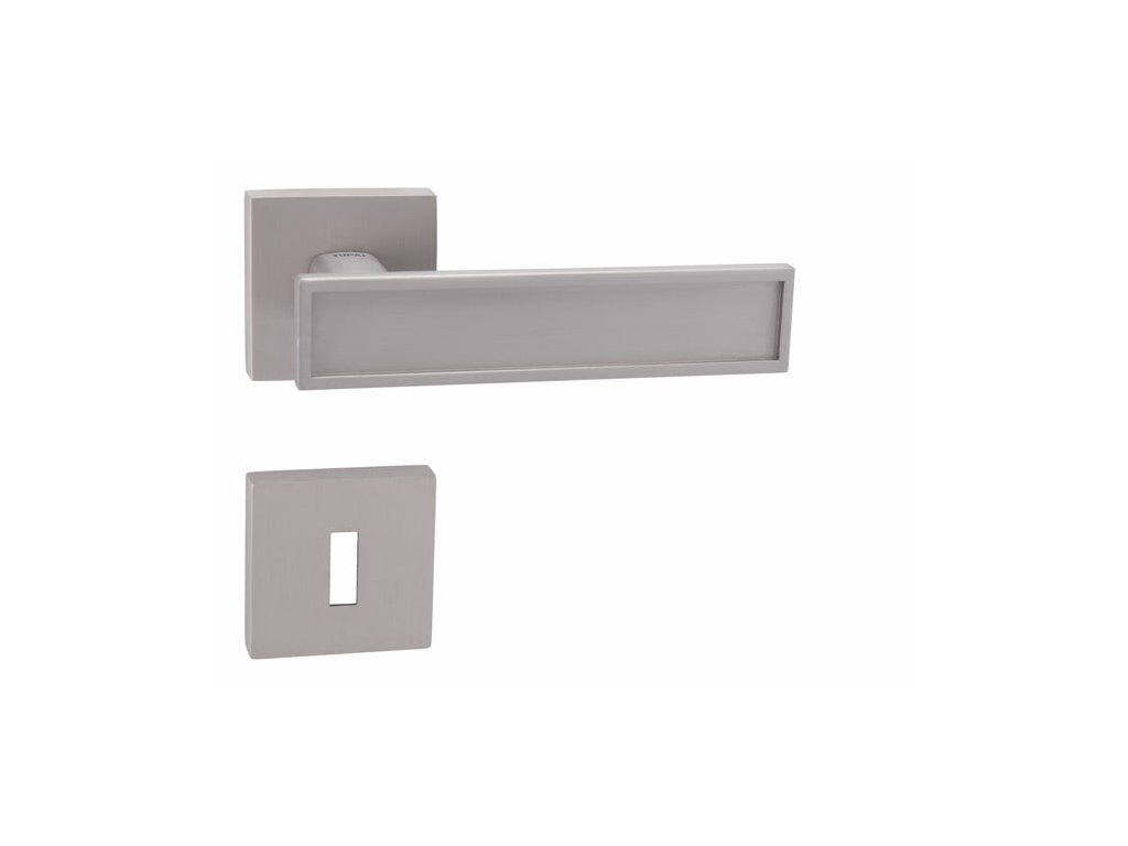 Rozetová kľučka na interiérové dvere s hranatou rozetou je vyrobená z materiálov vysokej kvality - zamak a je povrchovo upravená. Rozeta má rozmery 52 mm x 52 mm a štandardnú hrúbku 11 mm.