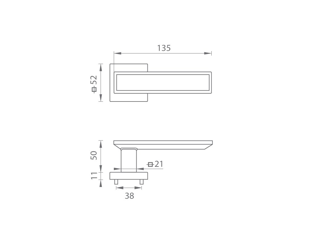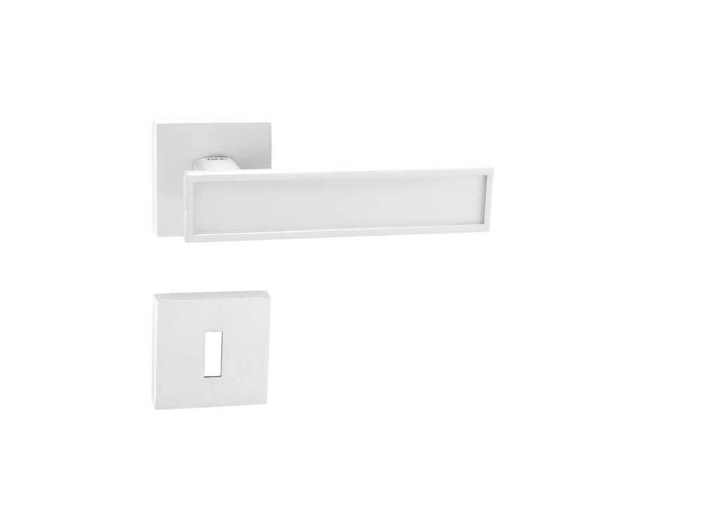 Rozetová kľučka na interiérové dvere s hranatou rozetou je vyrobená z materiálov vysokej kvality - zamak a je povrchovo upravená. Rozeta má rozmery 52 mm x 52 mm a štandardnú hrúbku 11 mm.