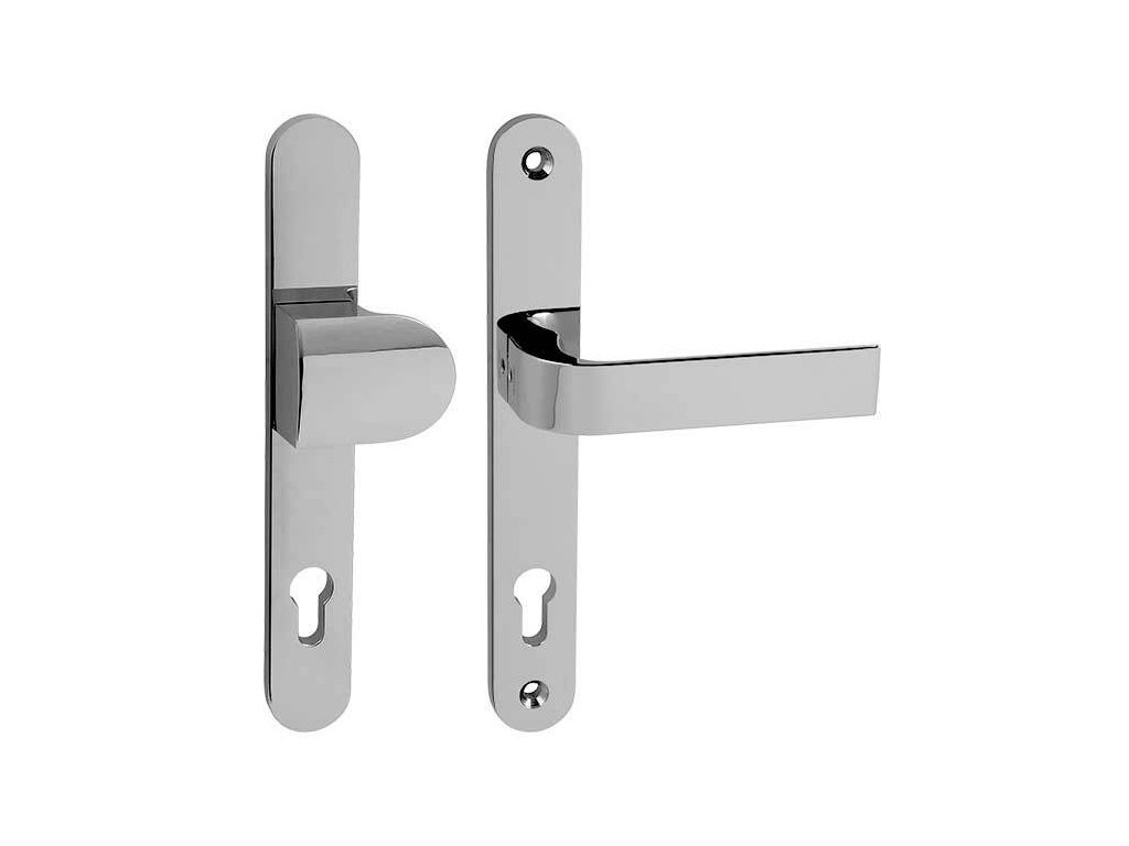 Spevnené kovanie vyvinuté pre hliníkové, plastové alebo drevené dvere s úzkym profilom, kde sa nevyžaduje bezpečnostný certifikát. Povrchová úprava chróm lesklý, chróm brúsený, biela, čierna sú vhodné aj do exteriéru v prípade ak je kovanie chránené pred nepriaznivými poveternostnými vplyvmi - dážd, sneh, UV atď. (napr. strieškou).