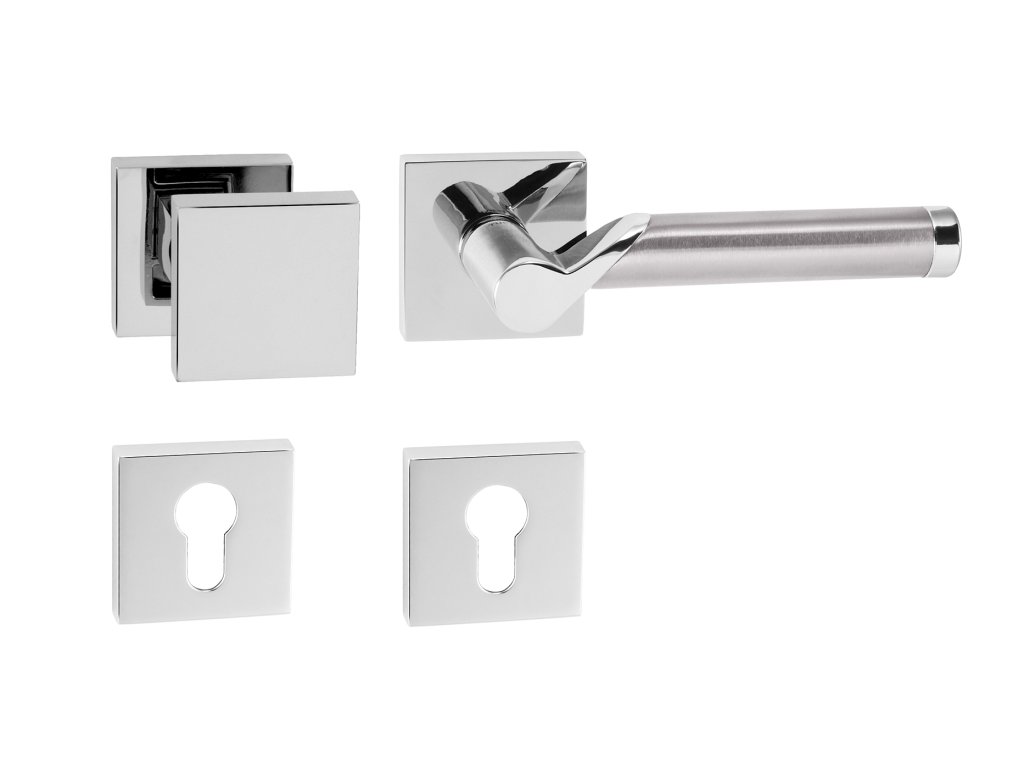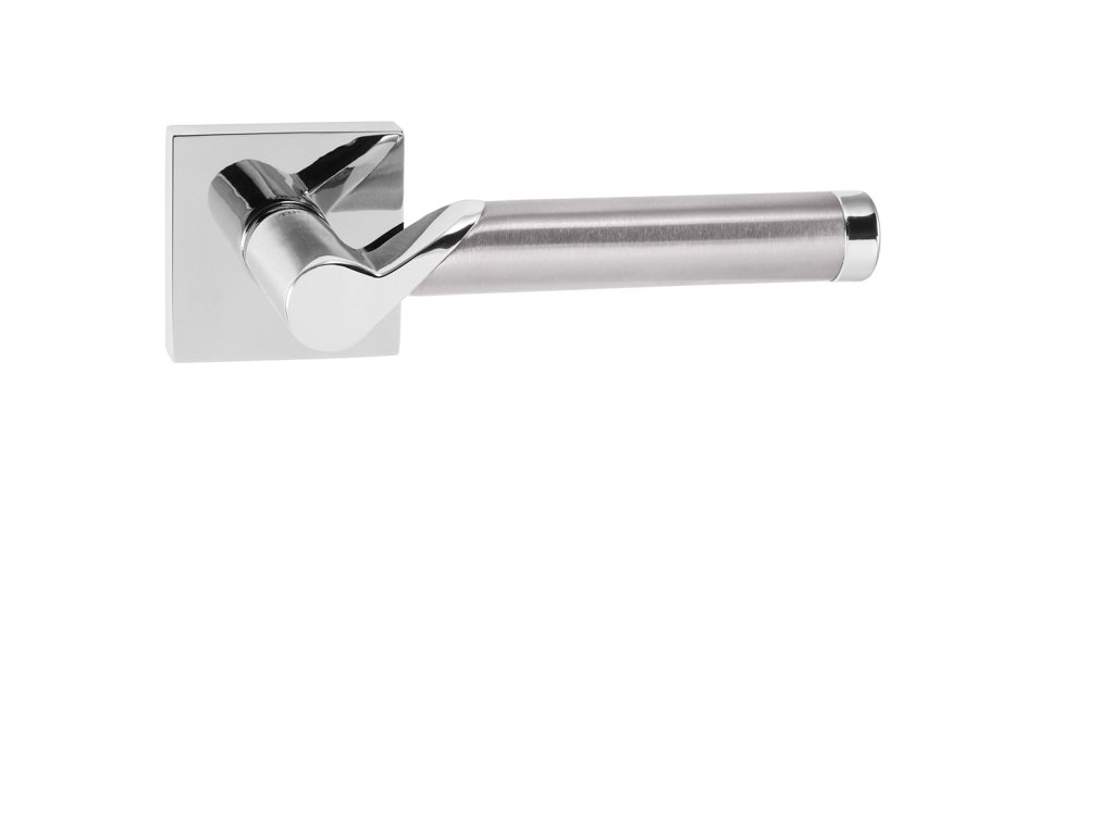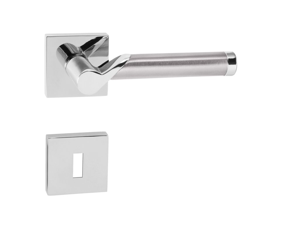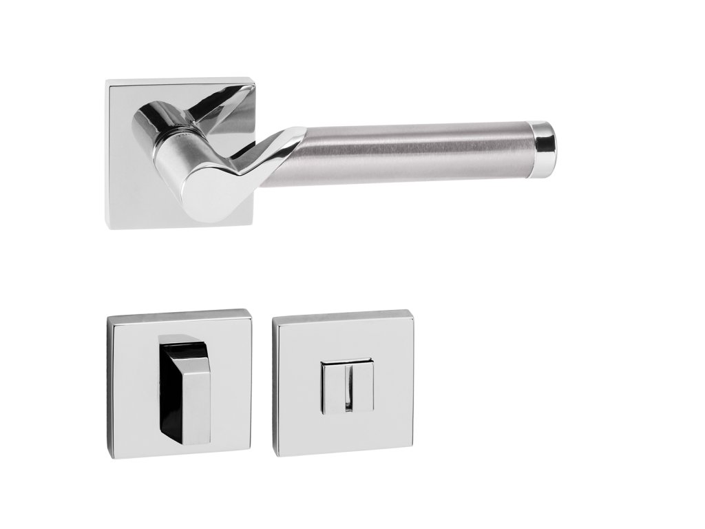 Rozetová kľučka na interiérové dvere s hranatou rozetou je vyrobená z materiálov vysokej kvality - zamak a z vysokokvalitnej nehrdzavejúcej ocele, známej ako nerez a je povrchovo upravená. Rozeta má rozmery 52 mm x 52 mm a štandardnú hrúbku 11 mm.