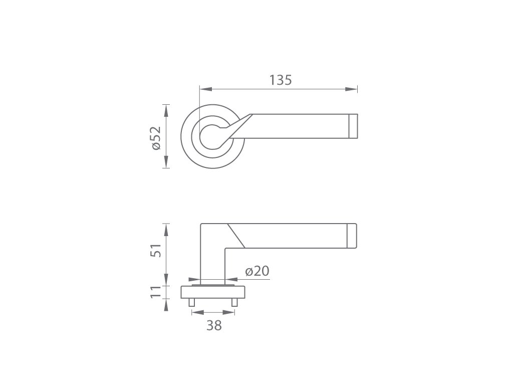 Rozetová kľučka na interiérové dvere s okrúhlou rozetou je vyrobená z materiálov vysokej kvality - zamak a z vysokokvalitnej nehrdzavejúcej ocele, známej ako nerez a je povrchovo upravená. Rozeta má priemer 52 mm a štandardnú hrúbku 11 mm.
