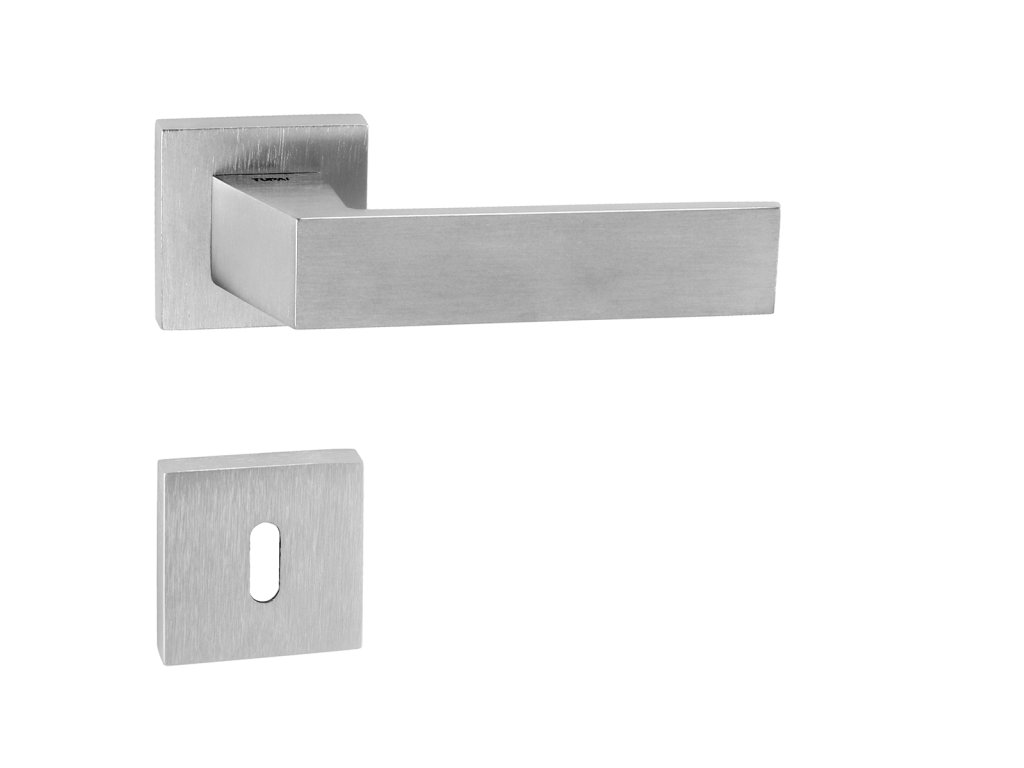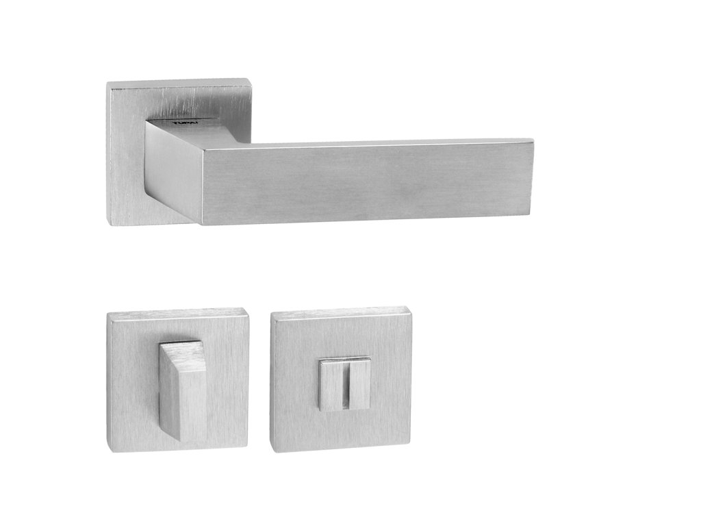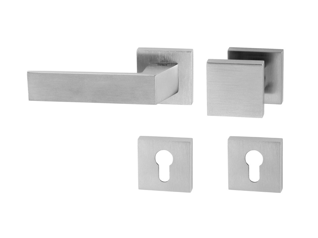 Rozetová kľučka na interiérové dvere s hranatou rozetou je vyrobená z materiálov vysokej kvality - zamak a je povrchovo upravená. Rozeta má rozmery 52 mm x 52 mm a štandardnú hrúbku 11 mm.